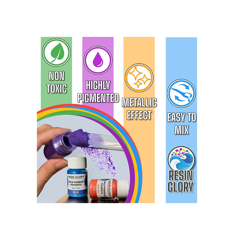 • NON-TOXIC: Resin Glory Mica Powder is totally irritation-free cosmetic grade colorant ,non-toxic and non-irritant skin moderate affinity you can rest assured attaching them to your creations makes your project pop.