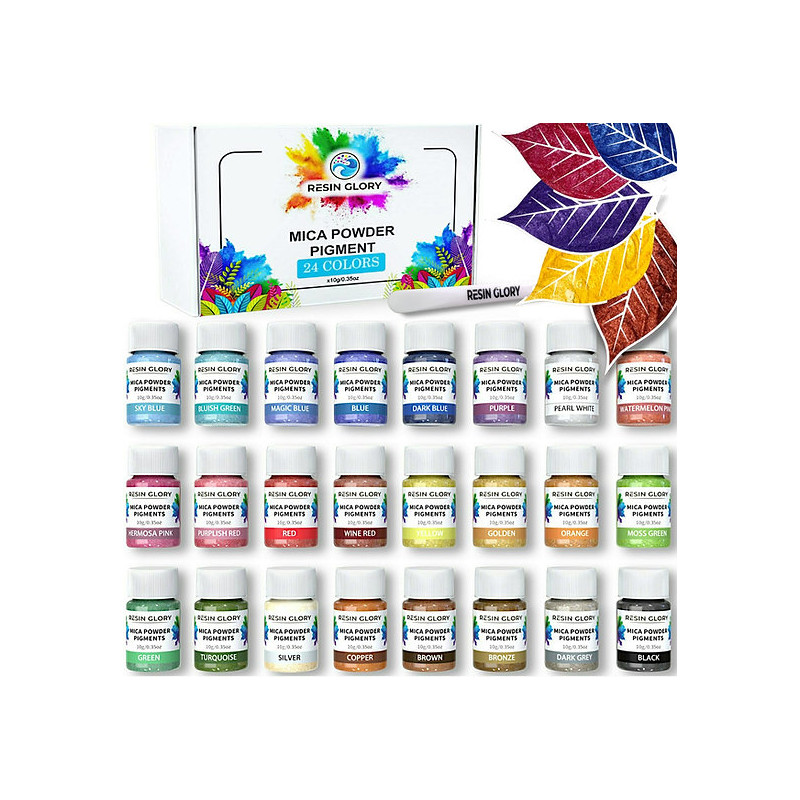 RESIN GLORY 24 Colors Mica Powder Set great for Epoxy Resin, Soap, Candle Making Dye, Nail Color, Bath Bombs Paint and Handmade Craft Colouring, Slime.