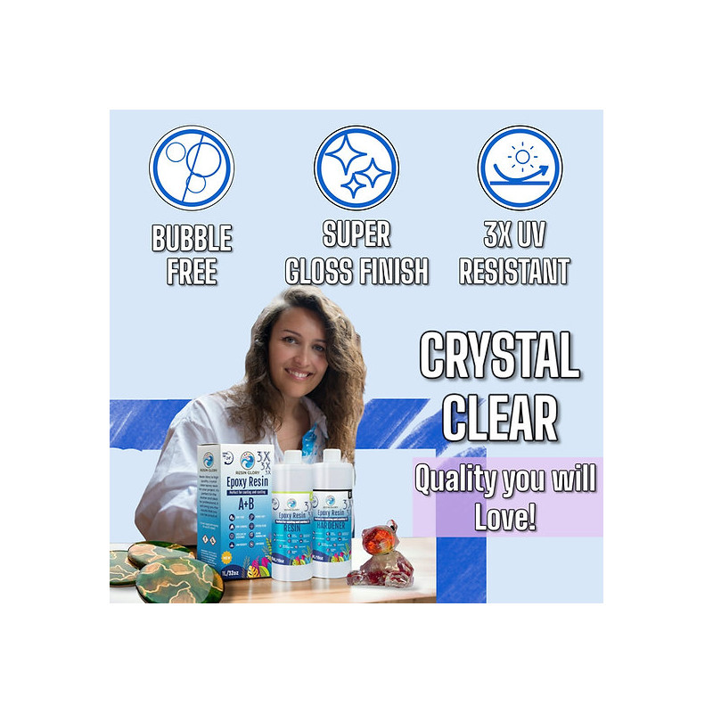 💎CRYSTAL CLEAR & GLOSSY FINISH - Our premium quality epoxy resin cures clear to a glass-like finish and hard as a rock to resist scratches, stains and yellowing. Excellent UV stability will protect your artwork and DIY projects long lasting. This super gloss formula cures to a crystal clear finish with no polishing required, which is great for doming and coating.