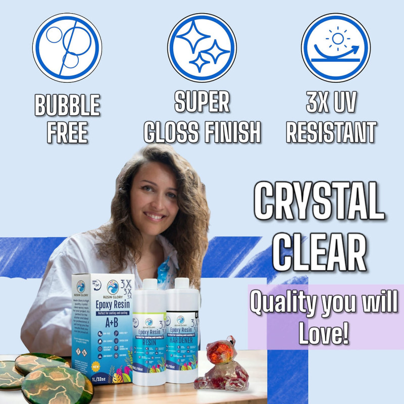 💎CRYSTAL CLEAR & GLOSSY FINISH - Our premium quality epoxy resin cures clear to a glass-like finish and hard as a rock to resist scratches, stains and yellowing. Excellent UV stability will protect your artwork and DIY projects long lasting. This super gloss formula cures to a crystal clear finish with no polishing required, which is great for doming and coating.